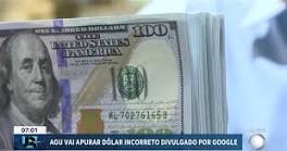 | AGU pede informações ao Banco Central após Google exibir cotação errada do dólar Segundo o órgão, os dados enviados pelo Bacen subsidiarão eventual atuação da Procuradoria-Geral da União.